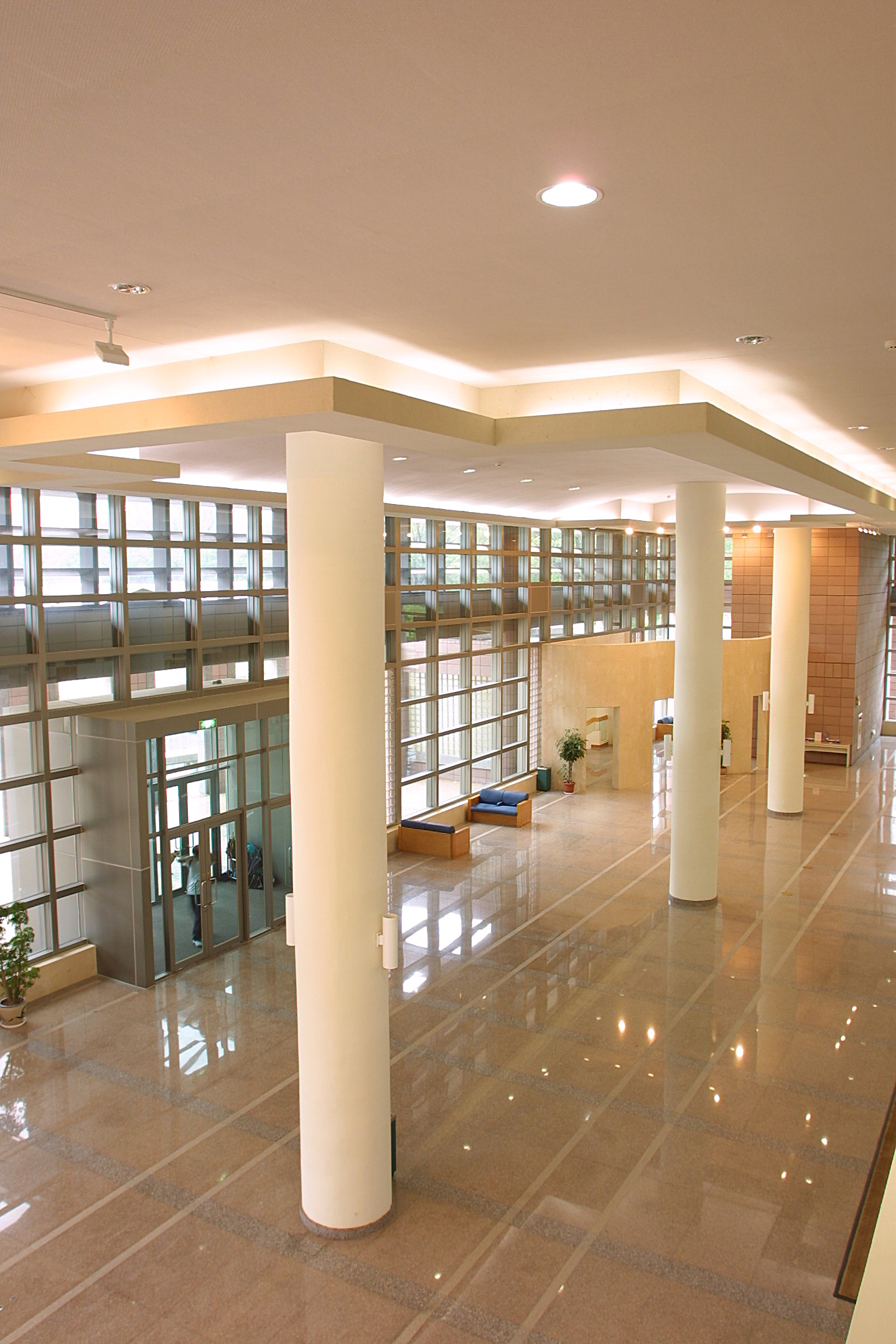 建築物東側為圖書閱覽空間,包含書庫、休息室、教師閱讀室、學生閱覽室等;西側空間包括武道場、住宿生食堂、廚房等。