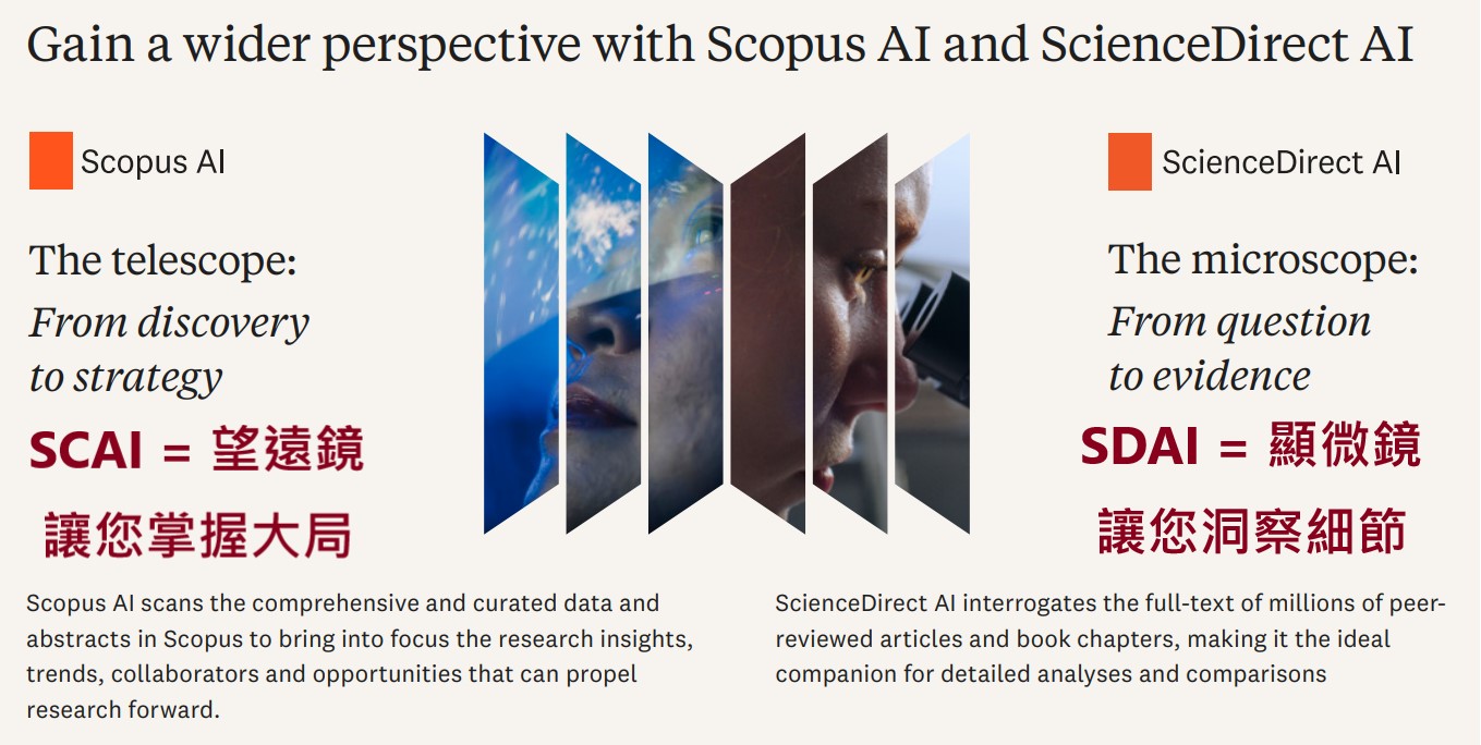 | 消息內容 | 權威的學術論文引用資料庫 Scopus索引摘要資料庫、 ScienceDirect全文資料庫 近期推出 AI智慧查詢摘要 學術論文的加值功能 邀你重新設計你的研究旅程, 試用開跑... ... ★ 連結使用 ScienceDirect AI 試用 2025.10.30.至 2025.11.30.。 (連結 簡介短片) ★ 連結使用 Scopus AI 試用 2025.12.01. 至 2025.12.31.。 (連結 簡介短片 ) ❤️一句簡介 1. SDAI:以 ScienceDirect 全文資料庫為基礎,提供 AI 加值功能,以「顯微鏡」方式深掘全文細節,當您在思考「正在做的研究」時,SDAI 提供相關文獻的比較表格,及針對單篇文獻的深入答詢及佐證段落。比較實驗模組影片(1 min) 2. SCAI:以 SOCPUS 引文資料庫為基礎,提供 AI 加值功能;以「望遠鏡」方式提供研究概觀,當您在思考「想做什麼研究」時,SCAI 提供各種觀點的快速見解,及深度研究報告功能來直接答詢和延伸研究等模組。深度研究報告影片(2 mins) ![]() ![]() 親愛的讀者您好: 你是否曾想過——如果研究有一位「AI 教師」陪你同行,會是什麼模樣? 這位教師不會替你寫論文,但能在你研究的每個階段,幫你釐清問題、連結全文、洞察趨勢、檢驗想法。 現在,這樣的 AI 教師正以 ScienceDirect AI 的樣貌,來到我們的校園。 ________________________________________ ⭐從你的研究生命週期開始 在開始試用之前,不妨先問問自己: 「我的研究生命週期長什麼樣?」 是從發想到文獻回顧、實驗設計、資料分析,再到投稿與推廣嗎? 每個階段都有不同的資訊需求,而 ScienceDirect AI 可能在不同環節提供不同的助力。 ________________________________________ ❤️認識 ScienceDirect AI:不只是找資料的工具 ScienceDirect 是 Elsevier 的全文資料庫平台(僅限成圖有訂閱的期刊),收錄超過 2,600 種期刊與千萬篇文章。 而 ScienceDirect AI 是其新推出的生成式 AI 功能,能夠:(ScienceDirect AI,以下簡稱 SDAI。) • 變革性的檢索:你可以用熟悉的語言輸入問題,系統會優化及轉換為英文。SDAI 將從資料庫中提取符合問題的全文及相關段落,並整合問題與相關段落來提供答案。 • 精準的引用:除了以總結性的答案掌握知識全貌,還可以查看每個論點的參考文獻(含全文連結、與論點最相關的段落)。也就是所有的論點都可以立即被查證。 • 比較實驗:SDAI 會根據你的問題,整理出最相關的 10 篇研究,並生成比較表,涵蓋實驗材料、方法與結論等關鍵細節。 • 閱讀助理:當你瀏覽全文或章節時,可以利用閱讀助理與單篇文章對話,助你迅速理解文獻中有價值的內容,並精準找出相關見解。 • 深度研究報告:依據你的問題,提供「主要發現表」等模組化資訊,生成整份報告供你做學習及延伸研究。 ________________________________________ ⭐把 AI 教師放進你的研究路徑中 當你熟悉 ScienceDirect AI 的功能後,請試著將它「嵌入」你的研究週期: • 它在哪些階段幫助最大? • 哪些部分仍需要人工判斷或補充? • 它能否真的提高你的研究效率或思考深度? 畢竟,「有效的工具,不一定對自己有用」,只有了解它與你的研究工作之間的關係,才能評估它的價值。 ________________________________________ ❤️圖書館誠摯邀請你的回饋 我們希望聽到你的聲音—— 無論是功能體驗、研究應用,或是覺得其他免費 AI 工具更適合, 都請與圖書館分享你的觀察與評估結果。 你的回饋,將幫助圖書館更精準地支持校內研究與學習。 ________________________________________ 讓我們一起探索: 當「AI 教師」走進研究室,知識學習與創新的方式,會變成什麼樣子? 祝 研究順利, 公告:2025年11月5日、10月31日30日。 |
