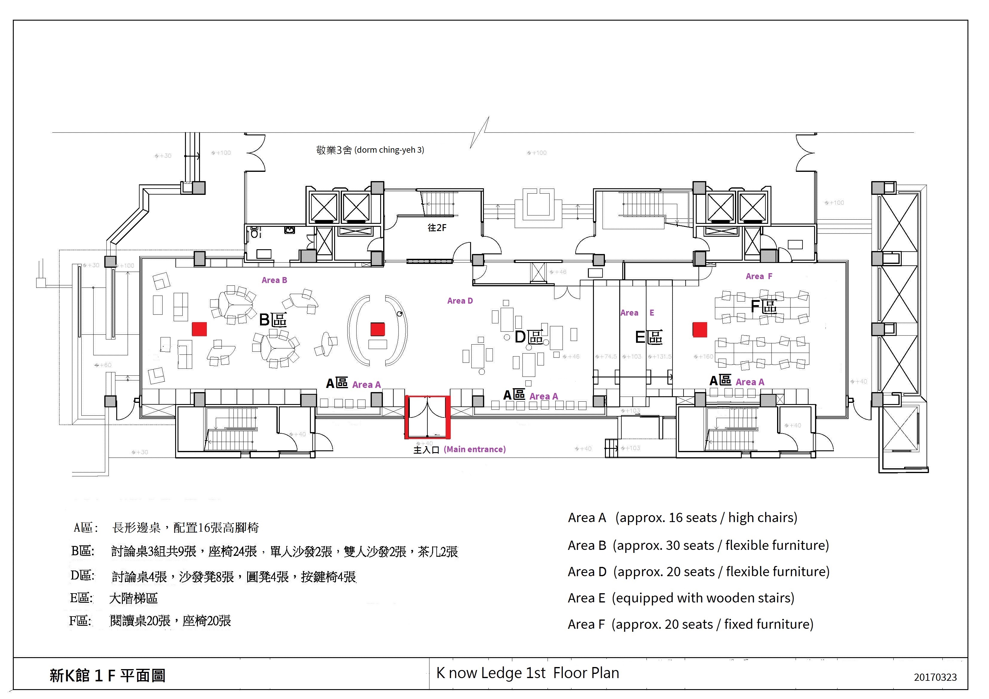 - The discussion and interaction area on 1st floor ◦The NCKU faculty, students and staff are welcomed to take any seat you like for non-activities use.