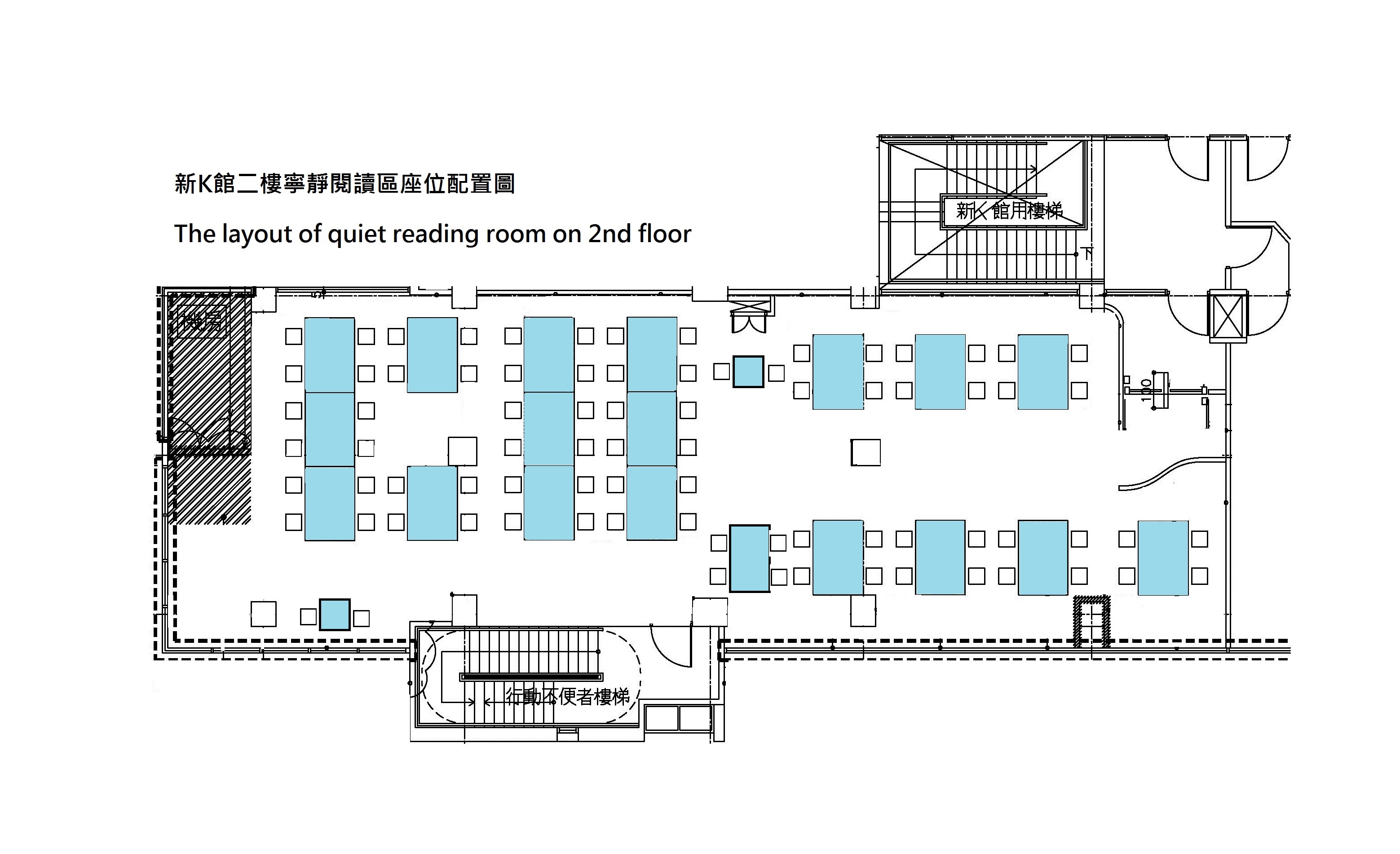 - The quiet reading room on 2nd floor. For use the reading room, the NCKU faculty, students and staff could take any seat they like on a first come first served basis.